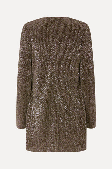 Boxy mini dress with a relaxed silhouette, long sleeves and crewneck. All over metallic sequin pattern. Pair with your favourite accessories from the collection.